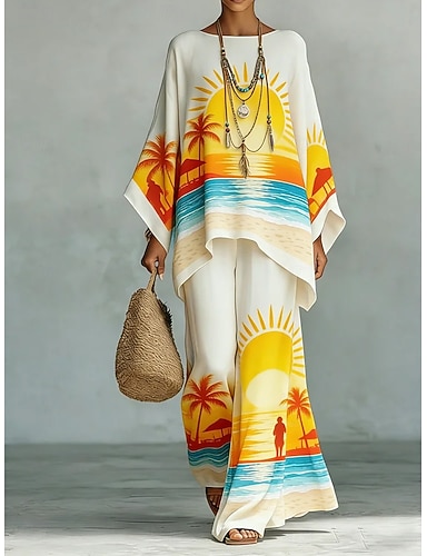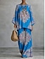 Per donna Set da due pezzi Set di Pantaloni Manica 3/4 Scollo a V Floreale Grafico Stampato Quotidiano Elegante Casuale Quotidiano Vacanza Blu Viola Arancione Estate Vestibilità regolare