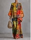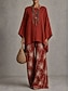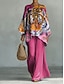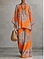 Per donna Camicia Set di biancheria in cotone Set di Pantaloni Manica Lunga Manica a Campana Girocollo Grafico Paisley Stampato Vacanza Moda Streetwear Casuale Quotidiano All'aperto Giallo Cammello