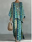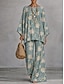 Per donna Camicia Set di biancheria in cotone Set di Pantaloni Manica Lunga Manica a Campana Girocollo Floreale Grafico Stampato Vacanza Moda Streetwear Casuale Quotidiano All'aperto Blu Verde Estate