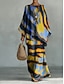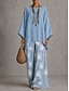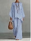 Per donna Camicia Set di biancheria in cotone Set di Pantaloni Manica Lunga Manica a Campana Girocollo Grafico Geometrico A righe Stampato Vacanza Moda Streetwear Casuale Quotidiano All'aperto Blu