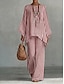 Per donna Set di Pantaloni Manica Lunga Colletto a Camicia Semplice Moda Streetwear Abbigliamento quotidiano Data Bianco Rosa Verde militare Estate Vestibilità regolare