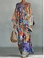 Per donna Camicia Set di biancheria in cotone Set di Pantaloni Manica Lunga Manica a Campana Girocollo Grafico Geometrico Stampato Vacanza Moda Streetwear Casuale Quotidiano All'aperto Blu Giallo