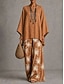 Per donna Camicia Set di biancheria in cotone Set di Pantaloni Manica Lunga Manica a Campana Girocollo Grafico Tinta a nodi Stampato Vacanza Moda Streetwear Casuale Quotidiano All'aperto Cammello