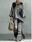 Per donna Set di Pantaloni Bolero Manica 3/4 Girocollo Ombre Grafico Stampato Moda Streetwear Casuale Quotidiano All'aperto Marrone Primavera & Estate Vestibilità comoda