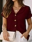 Per donna Blusa Bottoni Semplice Attivo Streetwear Elegante Manica Corta Girocollo Top Regolari All'aperto Abbigliamento casual alla moda Ferie Nero Rosa Vino Rosso Verde Estate Primavera