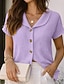 Per donna Piccola Y2K Top aderente Maglietta a Maglia Tunica Tinta unica Carino Elegante Sexy Manica Corta Scollo a V Colletto Polo Top corti Quotidiano Uscire Blu marino Estate Primavera
