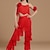 Top da ballo latino per ballo da sala, con nappe, frange e strass, con ruches, allenamento per prestazioni da donna, mezza manica, alta, in poliestere