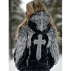Per donna Felpe con cappuccio Cerniera Tasca Stampato Grafico Tribale Moda Casual Manica Lunga Con Cappuccio Top Regolari Streetwear Abbigliamento Quotidiano Blu Viola Grigio Primavera Autunno