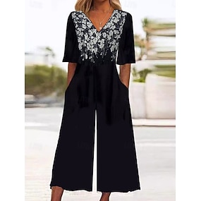 Per donna Normale Tuta Attivo Floreale Manica 3/4 Gamba larga Scollo a V Vita alta Vacanza Quotidiano Vestibilità regolare Nero Rosso Blu Estate