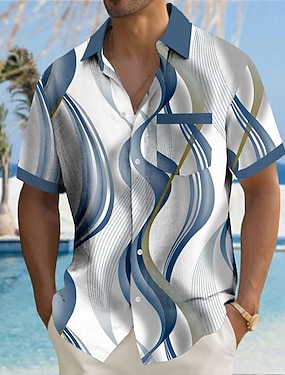 Per uomo Geometrico Onde Arte astratta Camicia Camicia Estiva Camicia con Bottoni Manica Corta Moda Casual All'aperto Vacanza Abbigliamento Quotidiano Estate Primavera Collo ripiegato Stampa 3D
