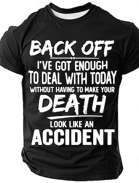 Maglietta grafica divertente da uomo a manica corta 'Back Off Don't Make Your Death Look Like An Accident'