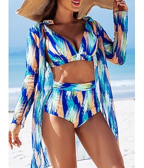 Per donna Costumi da bagno Prendisole Costume da bagno Vita alta Taglia piccola Festività Abbigliamento mare Tinta unica A V Manica lunga Costumi da bagno