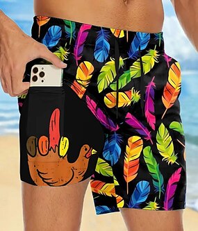 Per uomo Pulcino Divertente Dito medio Pantaloncini foderati Pantaloncini da bagno 2 in 1 Pantaloncini da mare Misura del girovita medio Hawaiano Vacanza Abbigliamento mare Tasche Laterali Con Fodera