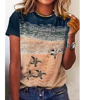 Per donna Maglietta Stampato Oceano Casual Manica Corta Girocollo Top Regolari Quotidiano Blu Estate Primavera
