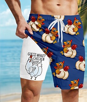 Per uomo Pulcino Divertente Dito medio Pantaloncini foderati Pantaloncini da bagno 2 in 1 Pantaloncini da mare Misura del girovita medio Hawaiano Vacanza Abbigliamento mare Tasche Laterali Con Fodera