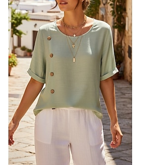 Per donna Camicia Blusa Finto cotone e lino Bottoni Tinta unica Semplice Elegante Classico Moderno Senza Maniche Manica Corta Girocollo Top Regolari Quotidiano Ferie Uscire Blu Nero Bianco Verde