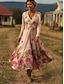 Per donna Abito Midi Abito a trapezio Festa Casual Boho Data Vestibilità regolare Floreale Grafico Manica Lunga Scollo a V Rosa Estate Primavera