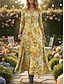 Per donna Abito Midi Vestito Casual Abito a Tubino Moda Moderno Quotidiano All'aperto Vacanza Vestibilità regolare Floreale Multicolore Manica Lunga Scollo a V Giallo Estate Primavera Autunno
