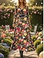 Per donna Abito Midi Abito Vintage Vestito Casual Vintage Vestibilità regolare Floreale Grafico Manica Lunga Scollo a V Nero Giallo Viola Verde Estate Primavera