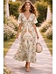 Per donna Abito maxi Abito a Tubino Casual Uscire Vestibilità comoda Floreale Grafico Manica Corta Scollo a V Beige Estate Primavera