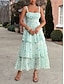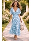 Per donna Abito Midi Abito a trapezio Vacanza Casual All'aperto Uscire Vestibilità regolare Floreale Manica Corta Scollo a V Blu Nero Verde chiaro Rosso Estate Primavera
