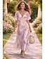 Per donna Abito maxi Abito a Tubino Casual Quotidiano Uscire Vestibilità comoda Floreale Grafico Manica Lunga Scollo a V Rosa scuro Viola Arancione Beige Estate Primavera