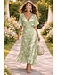 Per donna Abito Midi Abito Floreale Abito Stampato Moda Moderno All'aperto Vacanza Uscire Vestibilità comoda Floreale Manica Corta Scollo a V Blu Verde chiaro Verde militare Rosso Estate Primavera