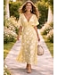 Per donna Abito Midi Abito a Tubino Elegante Vestibilità regolare Floreale Grafico Manica Corta Scollo a V Blu Giallo Rosa Viola Estate Primavera