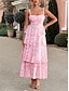 Per donna Abito maxi Vestito Estivo Abito Sottoveste Vacanza Casual All'aperto Uscire Vestibilità aderente Floreale Senza Maniche Spalline sottili Rosa Estate Primavera