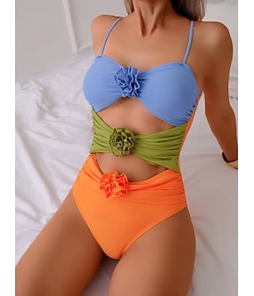 Costume da bagno intero da donna arricciato sexy con ritaglio monokini controllo della pancia alta vita schiena scoperta per vacanze in spiaggia color block scollatura a V senza maniche