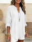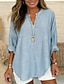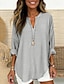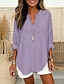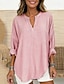 Per donna Blusa Finto cotone e lino Arricciato Bottoni Semplice Vintage Casual Manica Lunga Scollo a V Top Regolari Quotidiano Ferie Uscire Bianco Rosa Viola Verde Grigio Estate Primavera