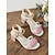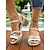 Sandali con zeppa da donna bianchi a fantasia floreale, comodi sandali aperti in punta con decorazioni floreali, scarpe casual con cinturino regolabile per l'estate, il giardino e le vacanze.