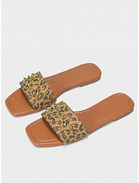 Sandali piatti da donna marroni intrecciati con dettagli dorati – per le vacanze &scarpe da sera da resort