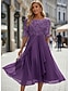 Per donna Abito Midi Abito in Pizzo Abito da Cocktail Abito da invitata a nozze Vestito in Chiffon Elegante Formale Feste Matrimonio Vestibilità regolare Mezza Manica Girocollo Rosa Vino Viola Oro