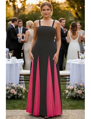 Tubino Colonna Strascico a Terra Abito da Sera Abiti da festa Abito formale Elegante Vintage Senza Maniche Collo quadrato Matrimonio Formale Crepe Elasticizzato con Con Spalline