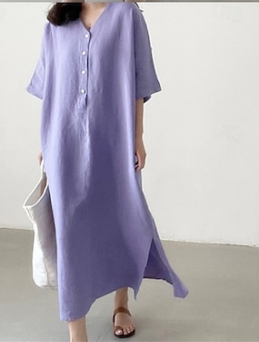 Per donna Abito Lungo Maxi Abito Abiti ispirati al lino Vestito Casual Elegante Etnico Casual Vacanza Quotidiano Data Vestibilità regolare Semplice Mezza Manica Scollo a V Viola Estate Primavera
