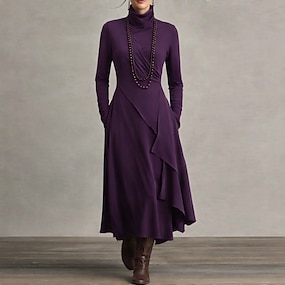 Per donna Abito maxi Tubino Abito a Portafoglio Vestito T-Shirt Abito a trapezio Vacanza Festa Casual Quotidiano Ufficio Spiaggia Vestibilità regolare Semplice Manica Lunga Dolcevita Nero Blu reale