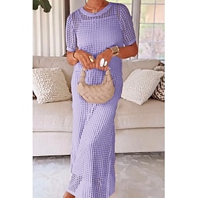 Per donna Insieme del vestito Vestito Estivo Abito a Tubino Vestito in Tulle Elegante Casual Semplice Traforato Abito Midi Manica Corta Girocollo All'aperto Spiaggia Bianco Blu marino Viola Estate