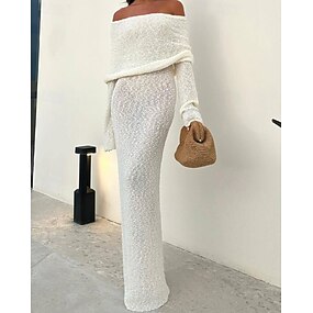 Per donna Abito Lungo Maxi Abito Abito da Ballo Vestito da Festa Elegante Moda Feste Occasione speciale Festa serale Vestibilità regolare Semplice Manica Lunga Senza Spalle Nero Bianco Albicocca