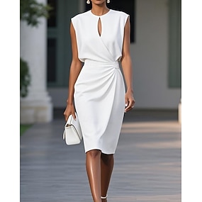 Per donna Abito Midi Abito da lavoro Attillato Abito a Tubino Elegante Moda Moderno All'aperto Ufficio Vacanza Vestibilità regolare Semplice Mezza Manica Girocollo Nero Bianco Rosa Estate Primavera