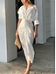 Per donna Abito casual Vestito maxi Increspato Informale A V Manica lunga Marrone Verde Grigio Colore
