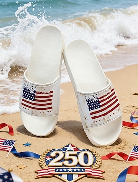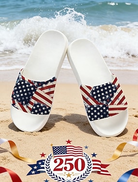 Sandali infradito patriottici da donna: ciabatte da spiaggia leggere con grafica della bandiera americana, ideali per vacanze, piscina, resort e abbigliamento casual estivo.