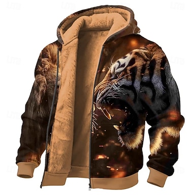 Per uomo Leone Pile Felpa con Cappuccio Giacca di pelle Felpa Classico 3D Girocollo All'aperto Campeggio Nero Con zip Autunno Inverno progettista S M L XL 2XL 3XL