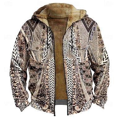 Per uomo Grafico Stile Boho Felpa con Cappuccio Giacca di pelle Moda Etnico Casual Manica Lunga Con Cappuccio All'aperto Sport all'Aperto Uscire Rosso Borgogna Blu Arancione Cachi Tasca Stampato Pile