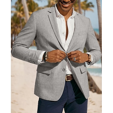 Per uomo Giacca blazer Blazer di Lino Colletto ad incastro Moda Casual Tinta unita Blazer Grigio chiaro Beige Vestibilità su misura Monopetto Due Bottoni
