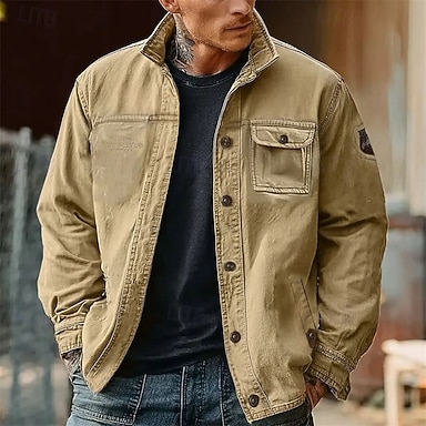 Per uomo Giacca Leggera Giacca Cargo Giacca Casual Quotidiano Vacanza Indossabile Tasca Primavera Autunno Semplice Moda Classico Bavero Regolare Blu marino Cachi Verde militare Giacca