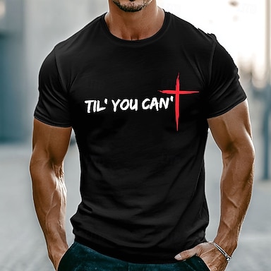 T-shirt da uomo con scritta "til you can't text" con croce rossa, motivazionale, religiosa, cristiana, ispiratrice, grafica, manica corta, vestibilità standard, casual, da indossare tutti i giorni,