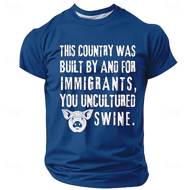 Maglietta da uomo con grafica di maiale in distressed: questo paese è stato costruito da e per gli immigrati, voi maiali incivili, testo divertente e sarcastico, girocollo, vestibilità regolare,