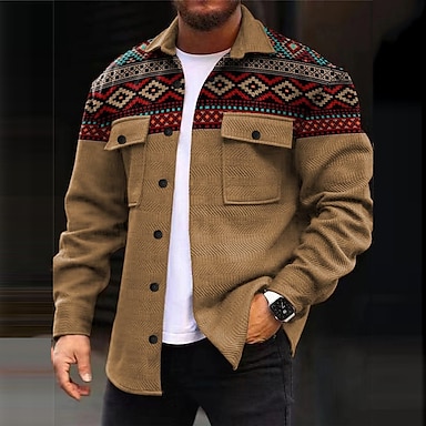 Per uomo Tribale Geometria Stampa Bandana Camicia Giacca da camicia Manica lunga Vintage Informale Tribale Esterno Strada Casual / quotidiano Autunno inverno Collo ripiegabile Bottoni Tasche Stampa