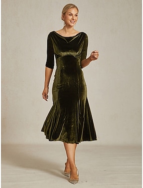 Per donna Abito Midi Tubino Elegante Ospite di nozze Cocktail party Tinta unica Manica 3/4 Girocollo Verde oliva